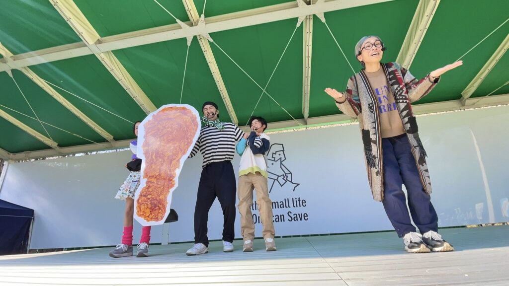皆さんの前で、寸劇をし、声を届け、歌を届け、